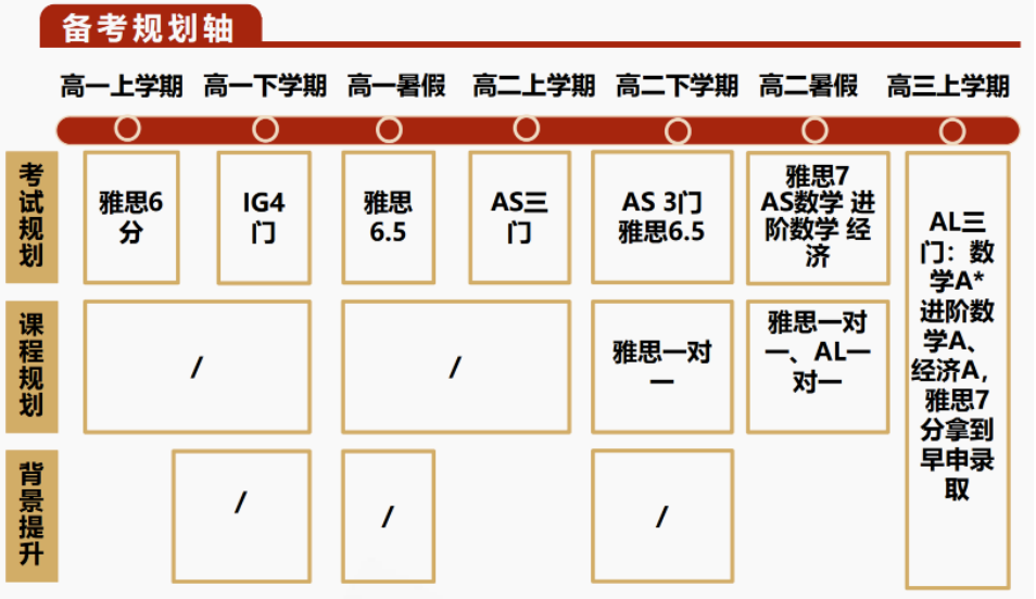 同步学习雅思与4门IGCSE,高一暑假集中备考雅思,进行提分。