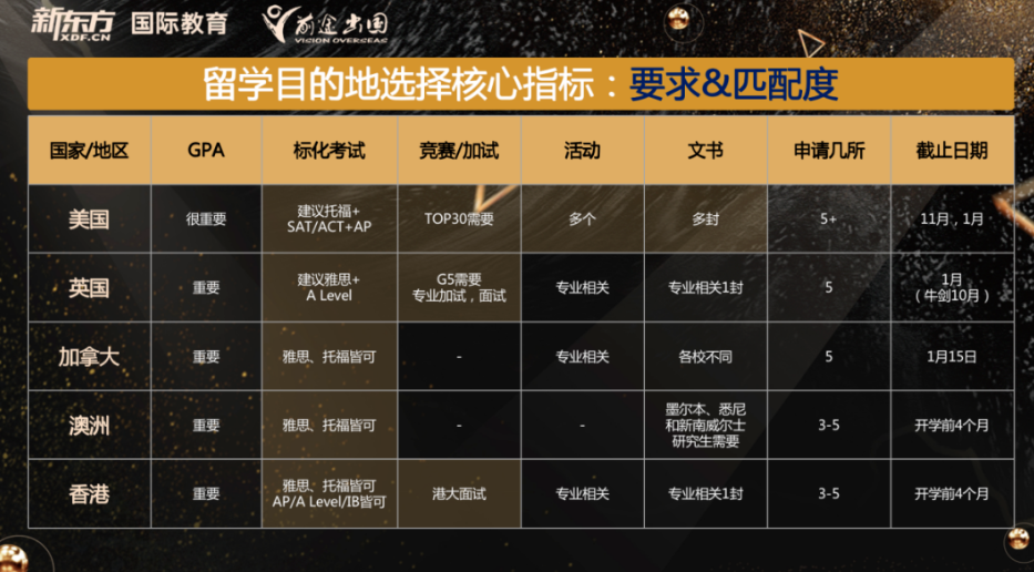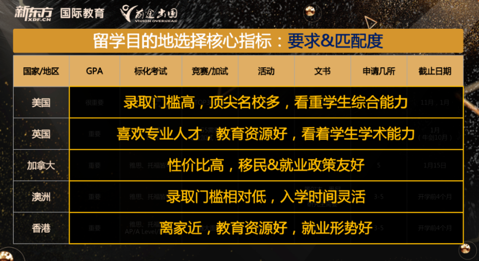 第三个需要关注的因素是匹配目标和条件,这直接关系到孩子留学申请的成功率。
