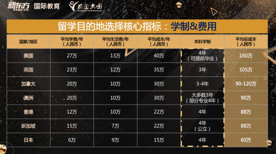 学制和费用也是各位家长和同学在规划留学目的地的时候需要考虑的重要因素。