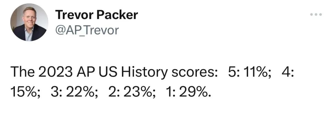 就5分率而言,今年AP美国历史达到11%,较去年略有提高(10.7%)。