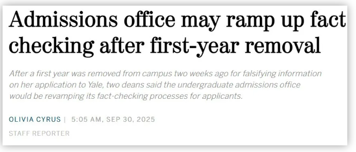 除此外,伴随着2025-2026新学年开学,耶鲁大学开除一名大一新生,再次向申请生强调学术诚信的重要。