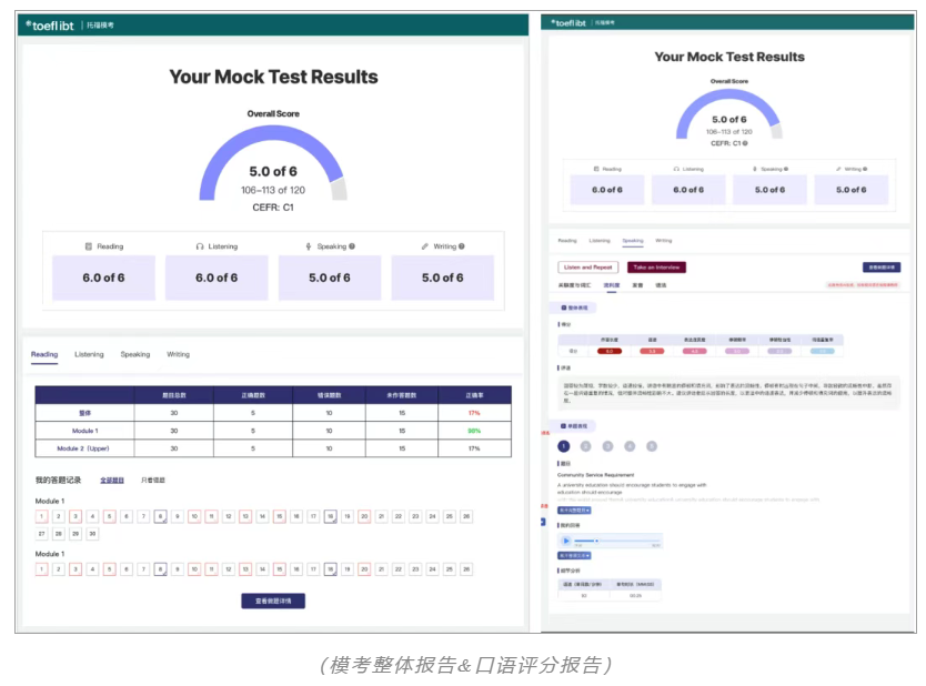 ✅真自适应:新托福同款分阶段自适应模考,帮助学生节奏+心态双适应